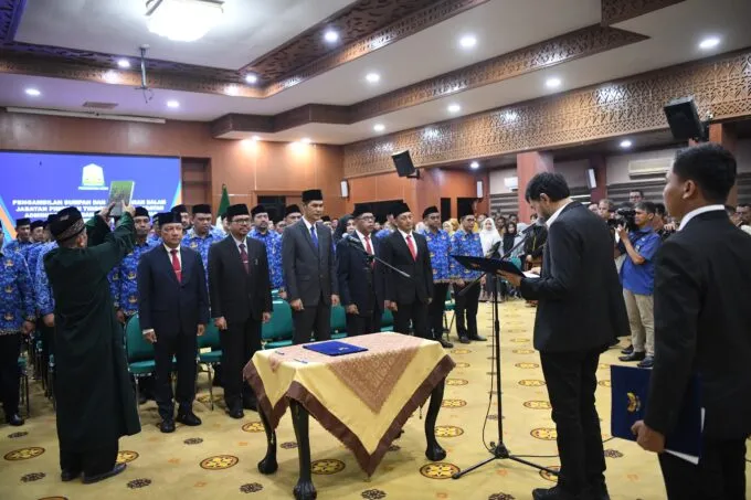OlehPUNCA.CO3 Juni 2025PUNCA.CO – Gubernur Aceh, Muzakir Manaf, mengambil sumpah dan melantik pejabat pimpinan tinggi pratama (eselon II), pejabat administrator (eselon III) dan pejabat pengawas...